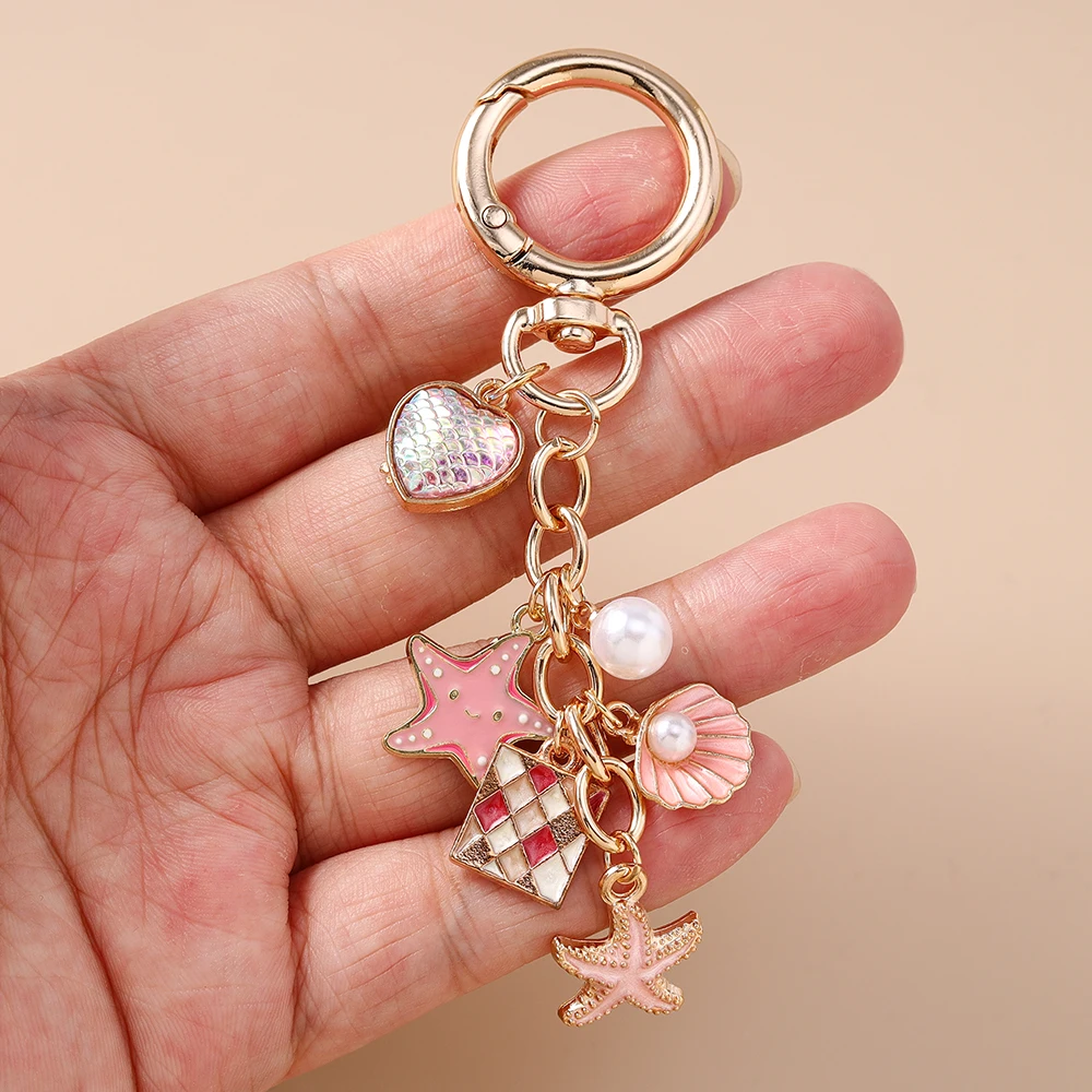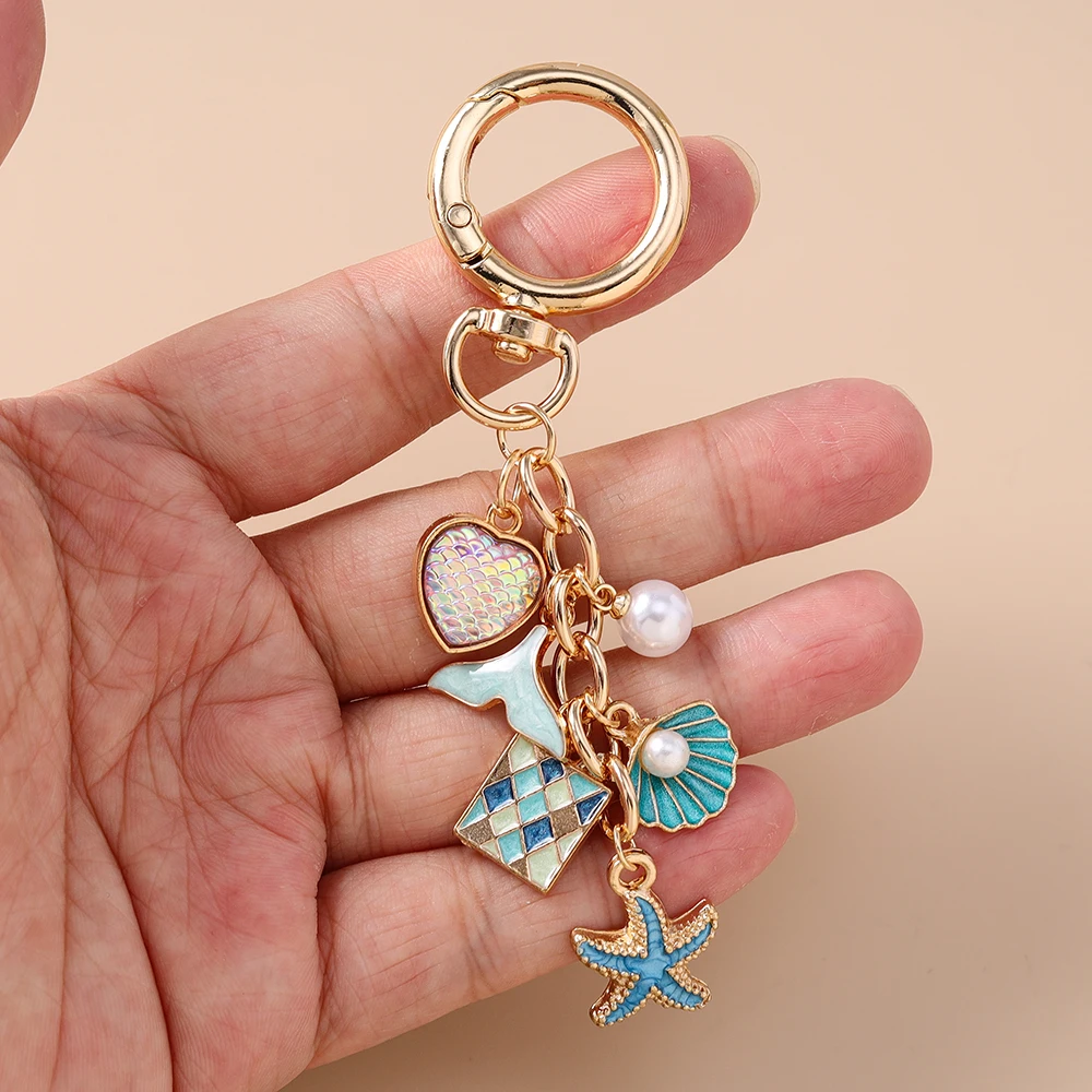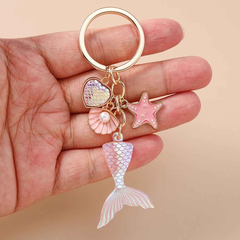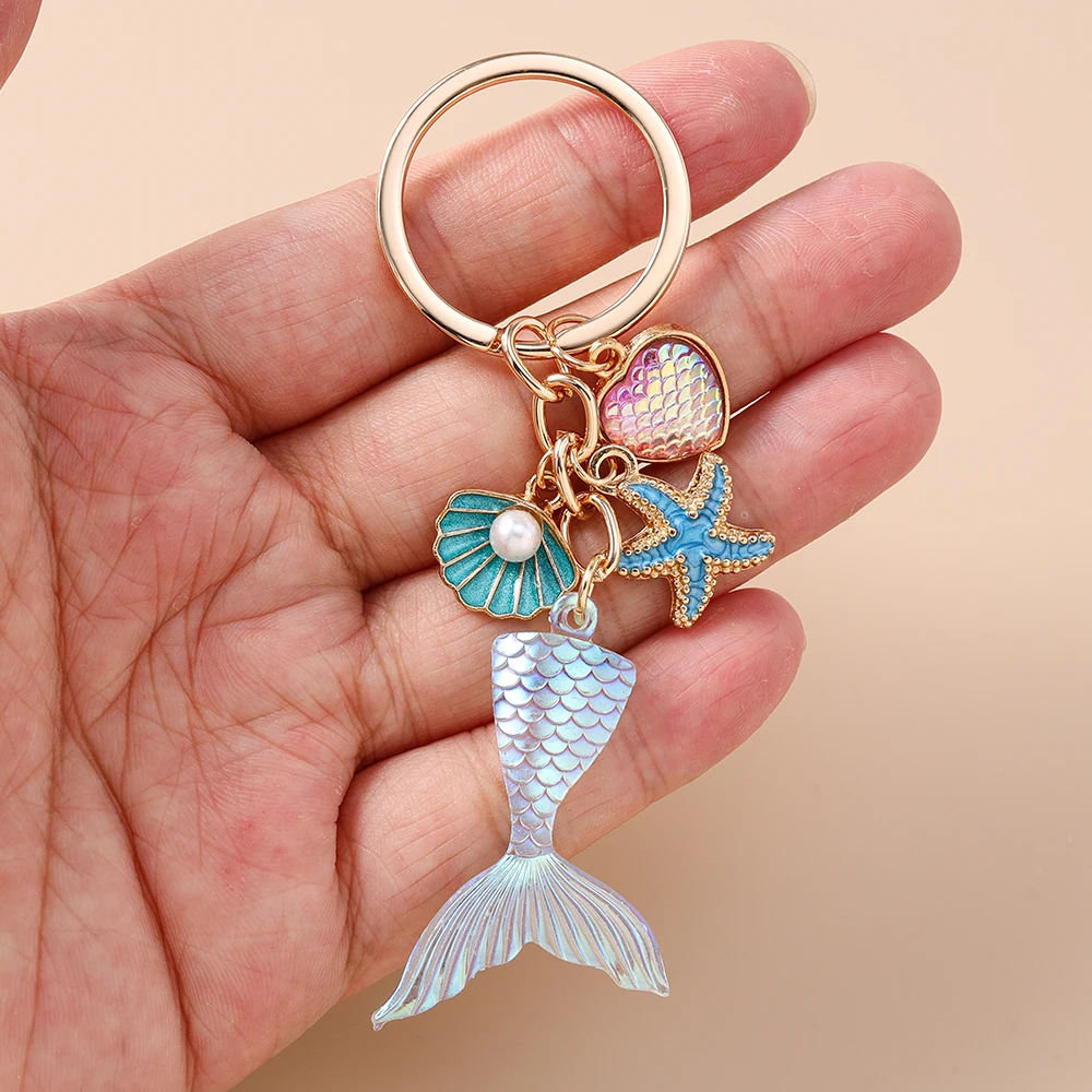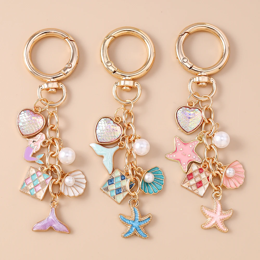 Fashion Mermaid Keychain Shell Starfish Key Ring Pendants for Women Girls Handbag Decor DIY Handmade Key Chain Gifts