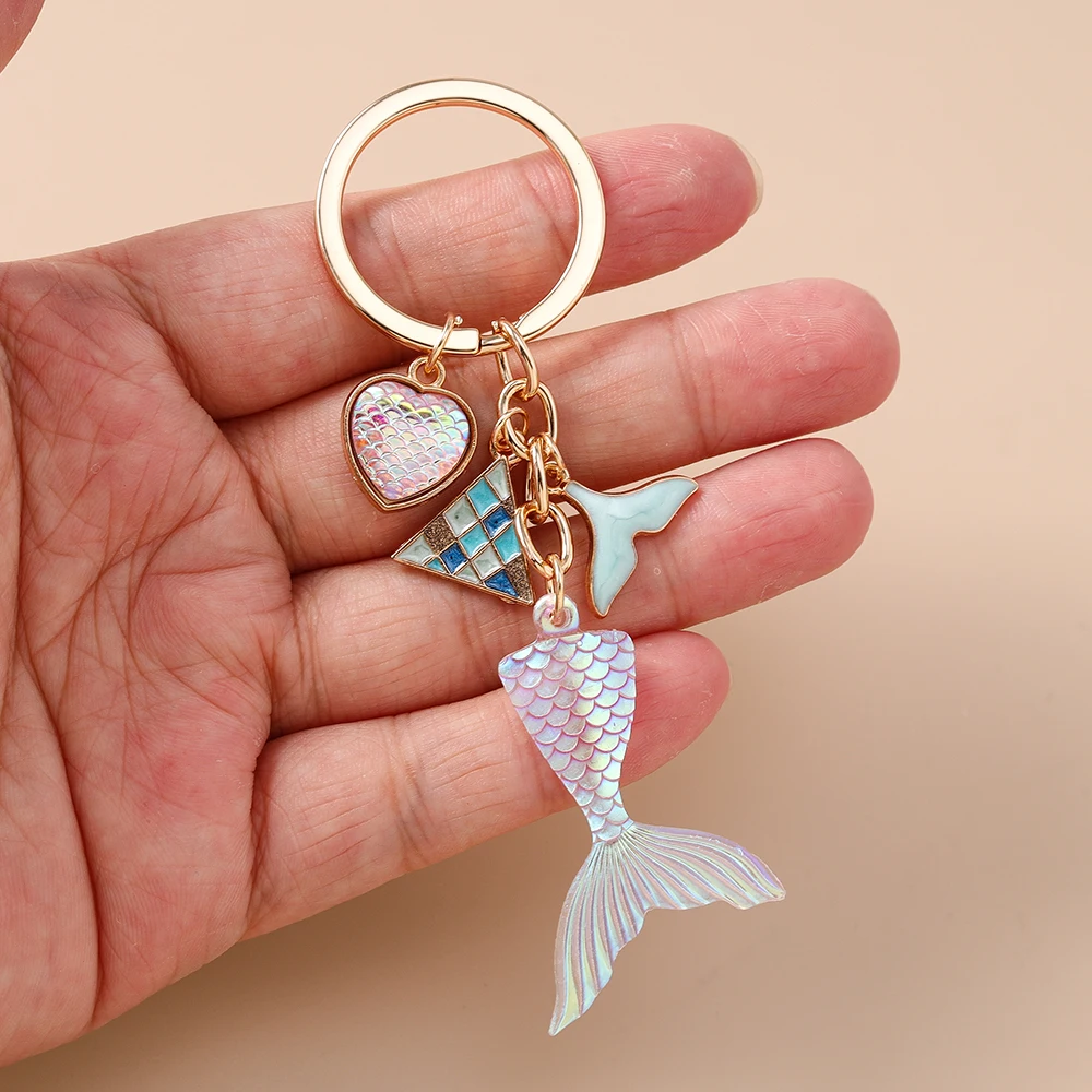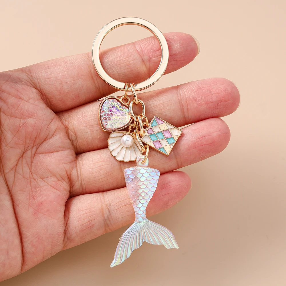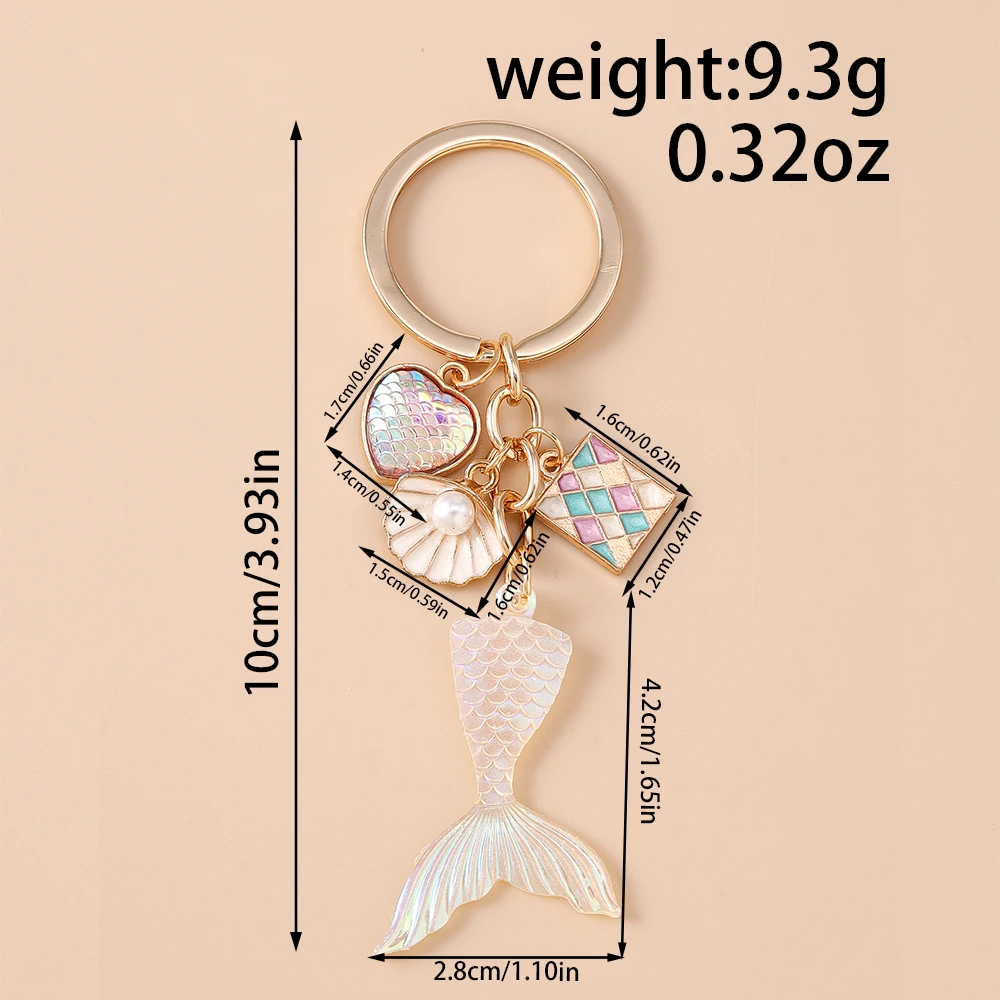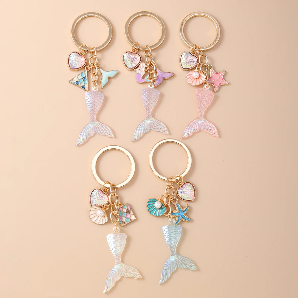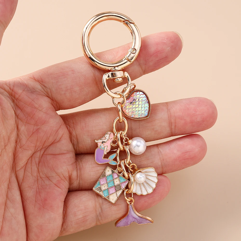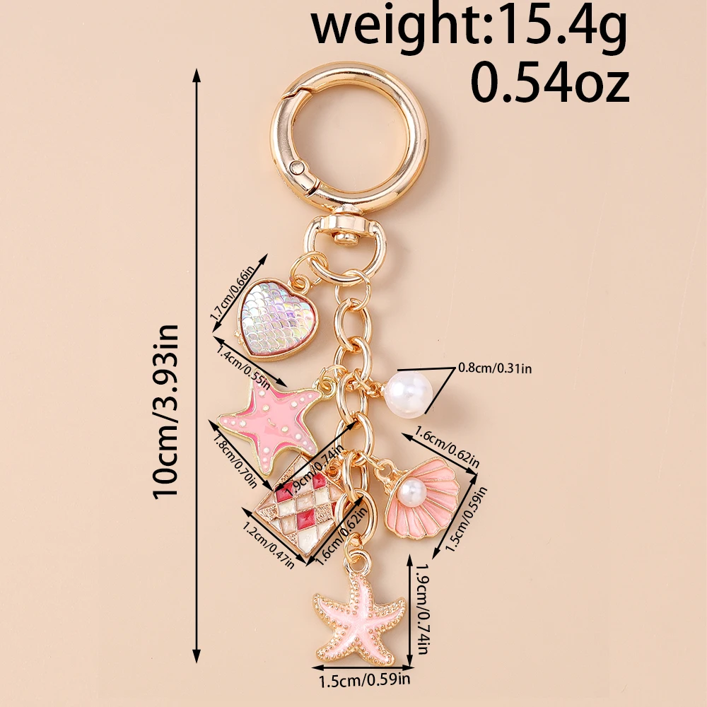 Fashion Mermaid Keychain Shell Starfish Key Ring Pendants for Women Girls Handbag Decor DIY Handmade Key Chain Gifts